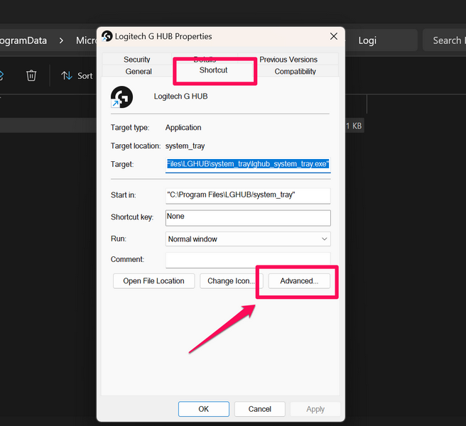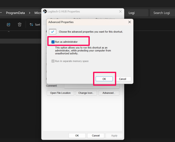 将 Logitech G Hub 配置为在 Windows 11 中以管理员身份运行