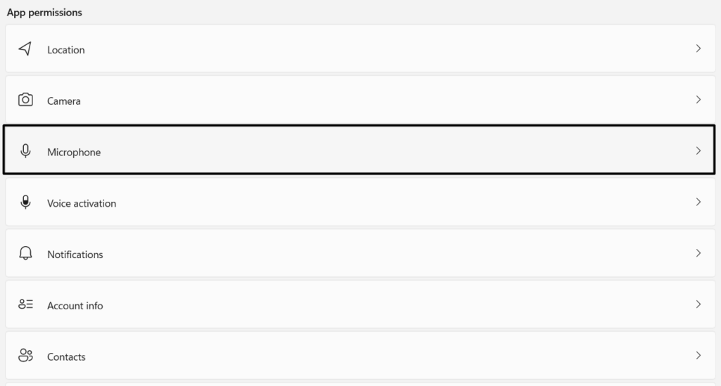 2.在隐私与安全窗户下,在应用程序权限,展开权限部分并单击麦克风。