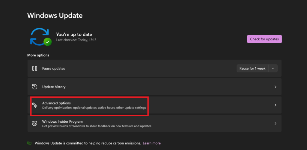 2.然后,导航至高级选项部分并单击可选更新选项。