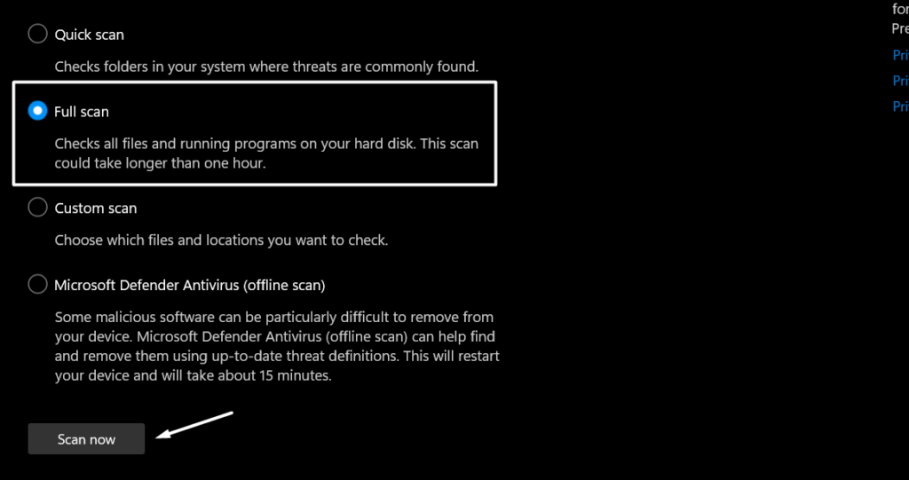 虚拟桌面无法运行的最常见原因之一 特征是恶意文件或木马。考虑到这一点,我们建议您运行详细的病毒扫描在您的系统上,然后检查问题的状态。