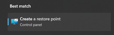 1.打开Windows 搜索框, 类型创建还原点,然后按进入钥匙。