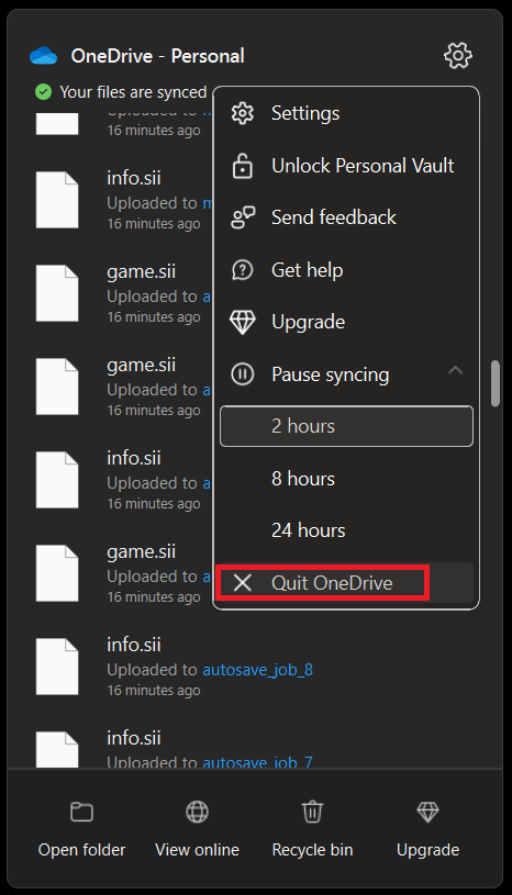 OneDrive 重新启动后,它将尝试重新连接 OneDrive 服务器并恢复同步文件。