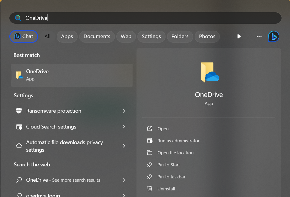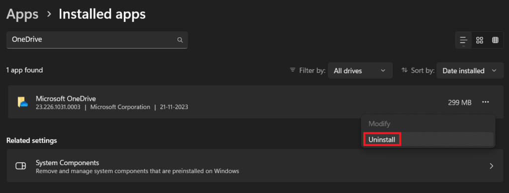 如果更新或重置 OneDrive 无法解决问题,请尝试卸载并重新安装该应用。重新安装可以消除任何潜在问题,还可以修复损坏的 OneDrive 应用文件。请按照以下步骤在 Windows 11 中重新安装 OneDrive: