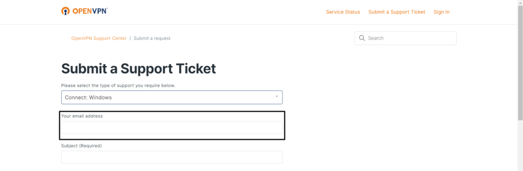 如果您仍然无法在 Windows 11 PC 上使用 OpenVPN Connect 程序,您应该向其支持人员提交支持票。希望他们能为您提供一些可行的解决方法,以消除 Windows 11 PC 上 OpenVPN Connect 应用程序的所有问题。请检查以下步骤以了解如何联系 OpenVPN 支持: