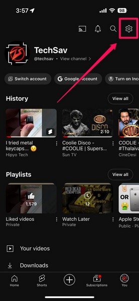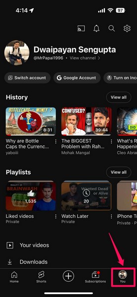 1. 打开 YouTube 应用在您的 iPhone 上和转到您的个人资料。