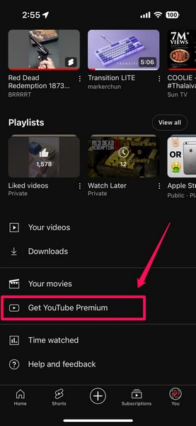 如果您已经拥有 YouTube Premium,则可以跳过此步骤并立即查看接下来的步骤。但是,如果您不是 YouTube 的 Premium 会员,则可以按照以下步骤在 iOS 设备上订阅 YouTube 的付费套餐之一: