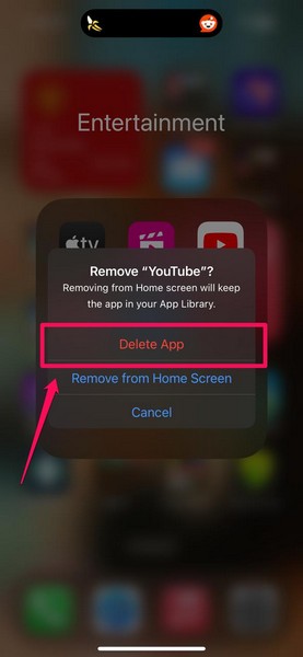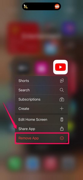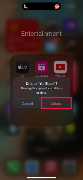 如果更新 YouTube 应用程序未能解决 iPhone 上的画中画问题,您现在可以尝试重新安装该应用程序。为此,您需要先从 iOS 设备上卸载 YouTube 应用。
