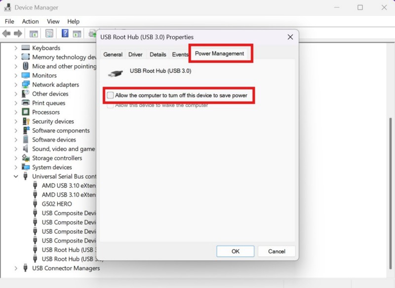 现在,许多用户报告说,即使在 Windows 11 电脑或笔记本电脑上更新并重新安装 USB 驱动程序后,他们仍然会遇到 USB 端口电源浪涌错误。如果有问题的 USB 端口的电源设置在设备管理器设置中配置错误,则可能会发生这种情况。