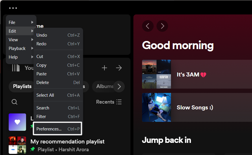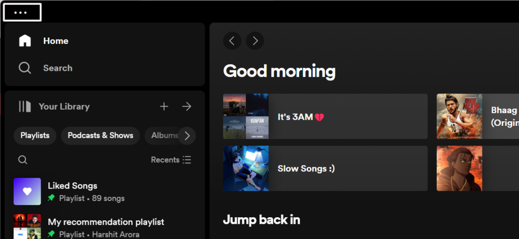 1。打开Spotify应用程序在您的PC上选择三个点(…)在右上角。