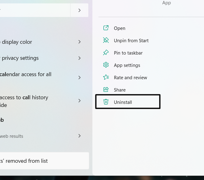 4。单击卸载新提示中的按钮可以从Windows 11 PC卸载该应用程序。