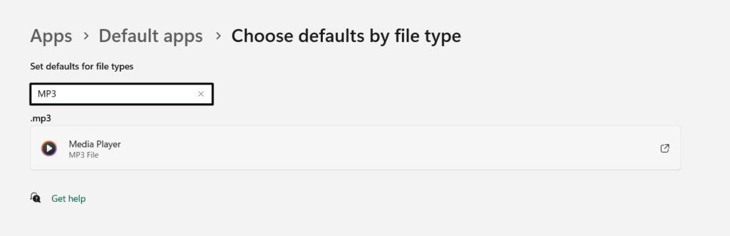 3。搜索.mp3文件类型,选择它,然后选择Windows Media Player应用程序。