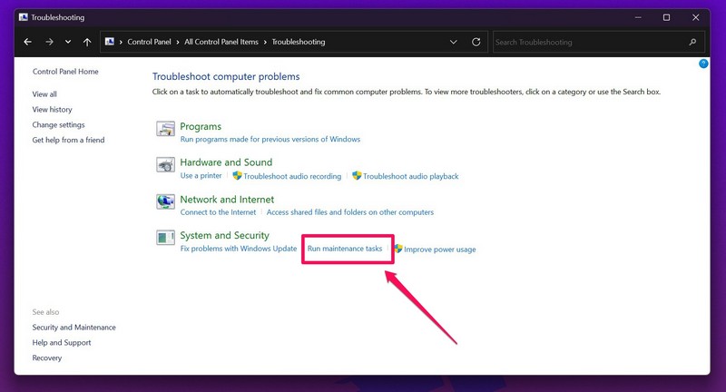 当您遇到 Windows 11 中的“任务管理器”问题中的“性能”选项卡不起作用时,您可以尝试的另一件事是运行系统维护工具。系统维护工具是一个本机 Windows 工具,可以解决可能困扰您系统的各种系统级问题。