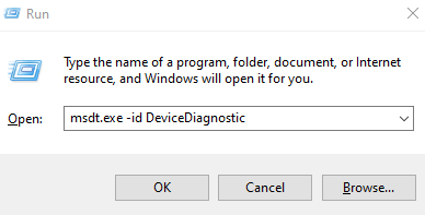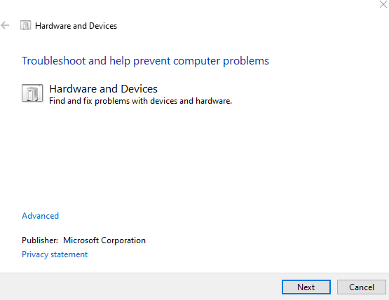计算机中存在一个内置工具,可以尝试解决任何与硬件相关的问题,即硬件和设备故障排除程序。尽管此 Windows 疑难解答程序不承诺解决此特定困难,但它仍然值得使用。您必须使用“运行”命令才能访问“硬件和设备疑难解答”,因为无法通过“设置”应用程序访问它。下面列出了步骤。