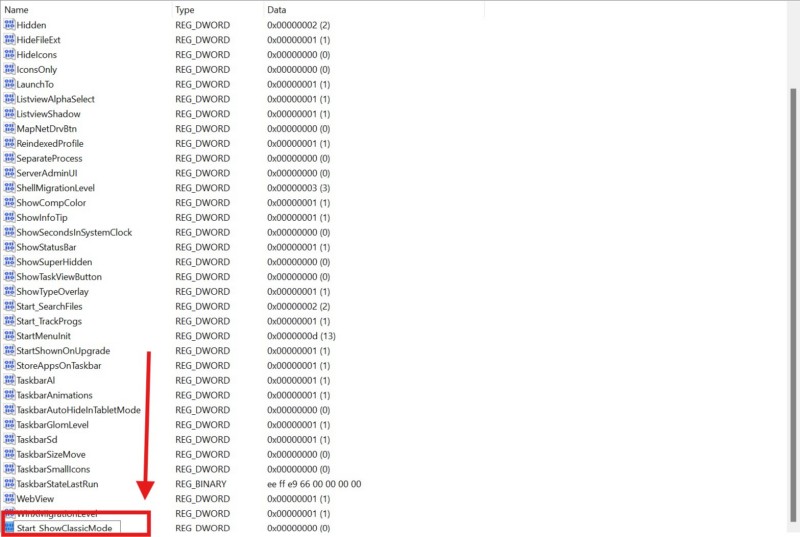 HKEY_CURRENT_USERSoftwareMicrosoftWindowsCurrentVersionExplorerAdvanced