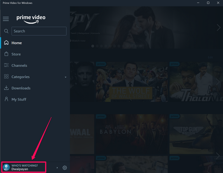 在 Windows 11 电脑或笔记本电脑上的 Prime Video 应用程序中创建新的配置文件后,您可以随时在应用程序中在它们之间进行切换。只需按照下面提到的几个步骤即可在 Windows 设备上执行此操作: