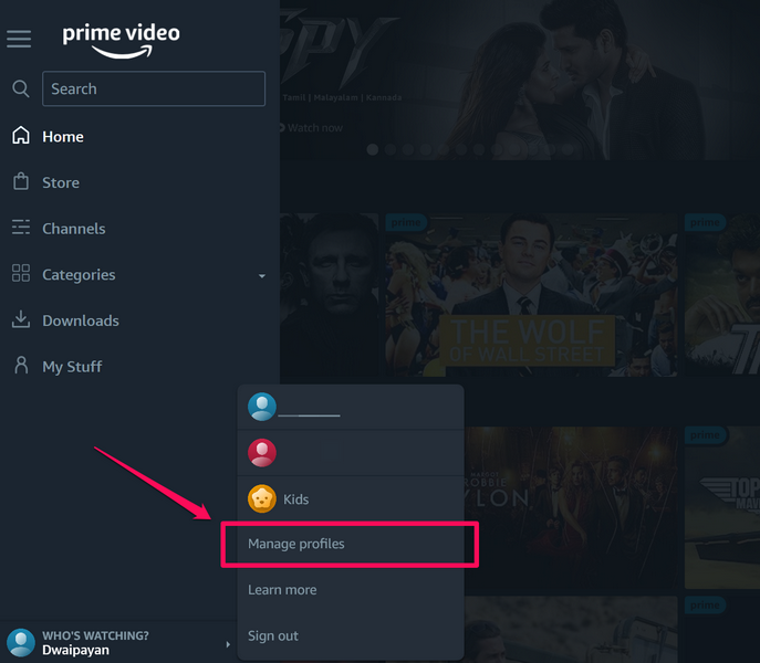 在 Windows 11 上的 Prime Video 应用程序中切换配置文件