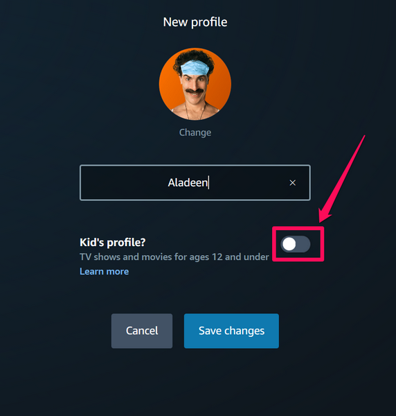 6.如果您要为孩子创建个人资料,您还可以启用孩子的个人资料?选项。启用此选项将在新个人资料中显示适合 12 岁及以下儿童的电影和电视节目推荐。
