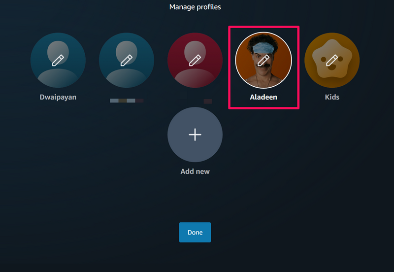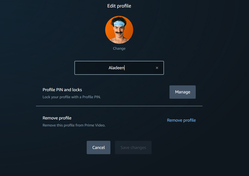 4.在这里,你可以编辑个人资料的名称,更改/添加新的个人资料图标, 或者删除配置文件完全来自您的 Prime Video 帐户。