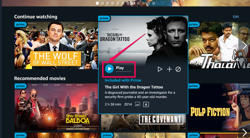 2.您现在可以简单地将光标放在电影上您想要在 Prime Video 中播放的内容,然后点击玩按钮。