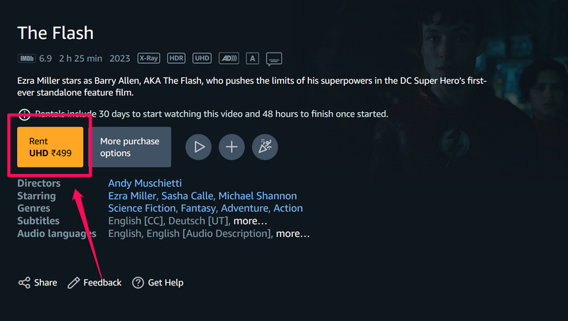 租借的电影可在 Windows 11 电脑或笔记本电脑上的 Prime Video 应用中开始观看,有效期为 30 天。但是,一旦您开始观看租借的电影,您将有 48 小时的时间看完它,否则该电影将再次进入付费专区。