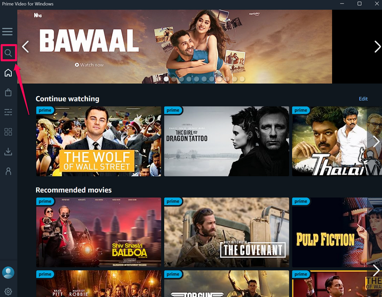 按照以下步骤在 Windows 11 电脑或笔记本电脑上的 Prime Video 应用中搜索内容: