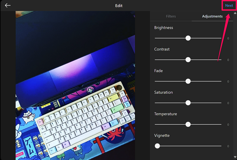 10.完成所有步骤后,您可以单击分享右上角的按钮可通过 Windows 11 PC 或笔记本电脑在 Instagram 上分享图像或视频。