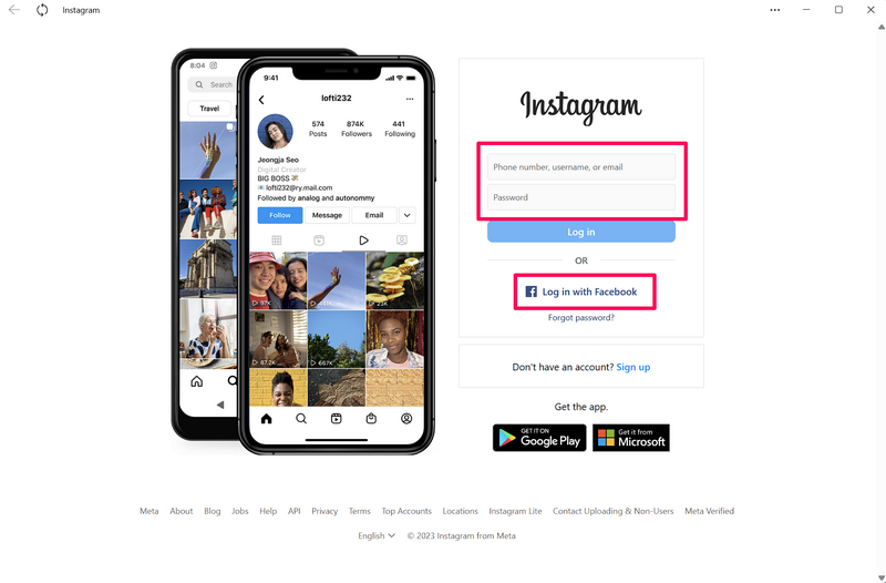 2.在登录页面上,您可以使用您的 Instagram 帐户登录电话号码、用户名或电子邮件和密码。另外,你使用您的 Facebook 帐户登录应用程序.