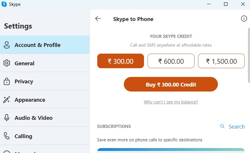Skype 有一个即用即付选项,称为Skype 信用让您可以以低廉的费用拨打电话和固定电话。对于只需要有限通话积分的人来说,这是一个完美的功能。如果您还需要额外积分来拨打一些额外的电话,请按照以下步骤操作: