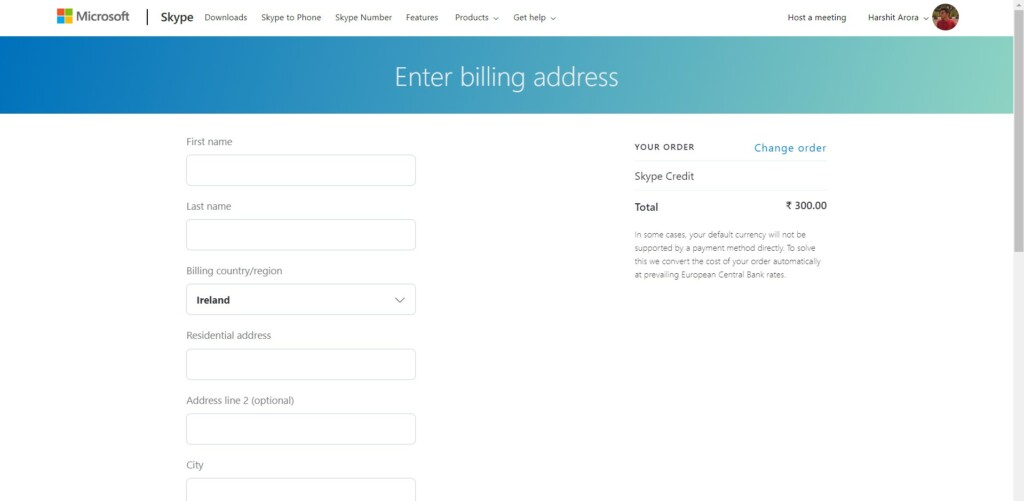 4.在下一个屏幕上,填写所需的订单信息并完成信用购买。