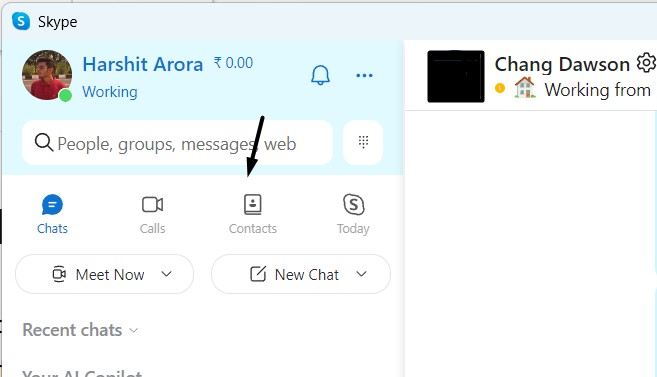 您现在已将联系人保存在 Skype 通讯录中。最后,您现在可以通过聊天与他们交谈。因此,请按照以下步骤了解如何在 Skype 上与您的联系人聊天:
