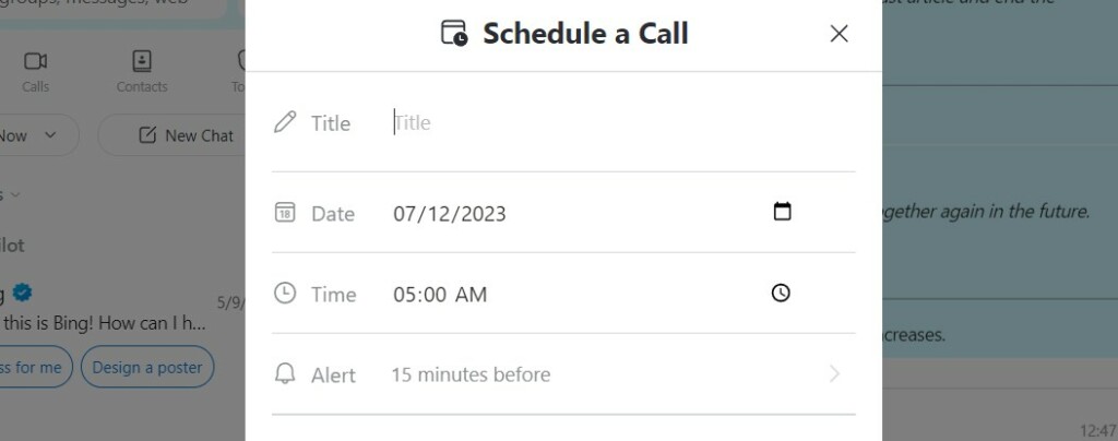 Skype 还可以让您安排通话在您喜欢的时间和日期与您的朋友、家人和同事一起。因此,请按照以下提示学习执行相同的操作: