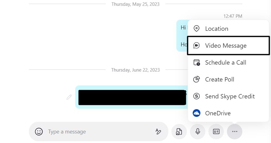 2.单击三点 (...)并选择 Skype 右下角视频留言从弹出菜单中。