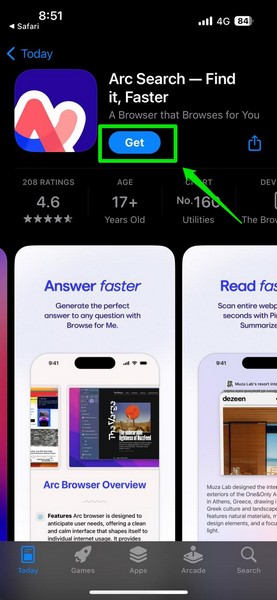 3.如果您正在 iPhone 上阅读本文,您可以使用此链接到直接打开Arc Search下载页面在应用商店上。