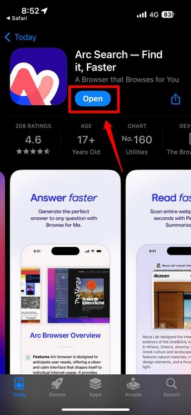 话虽如此,您可以按照以下步骤在 iOS 设备上下载并安装 Arc Search 浏览器: