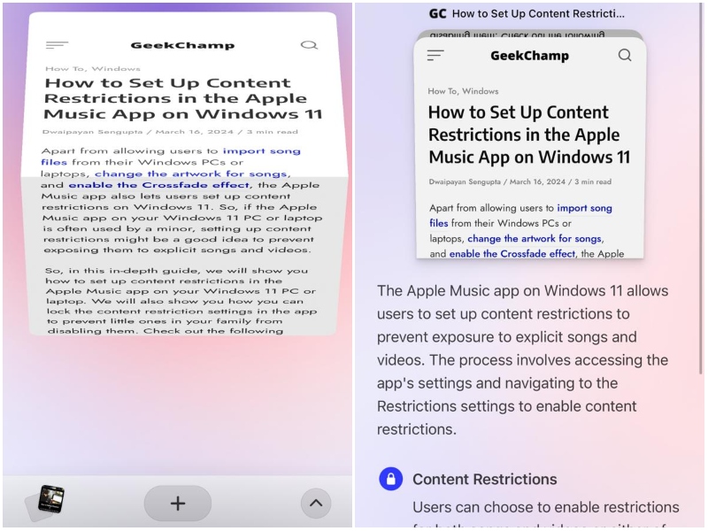 现在,当谈到在 iPhone 上使用 Arc Search 浏览器时,它与大多数移动网络浏览器(如 Safari 和 Chrome)类似。然而,如前所述,UI 设计中有一些调整,一开始可能会让您感到困惑。
