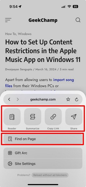 13.附加选项包括阅读器按钮,总结按钮,复制链接按钮, 和分享按钮。您还可以使用在页面上查找选项在当前网页上查找特定单词或短语。