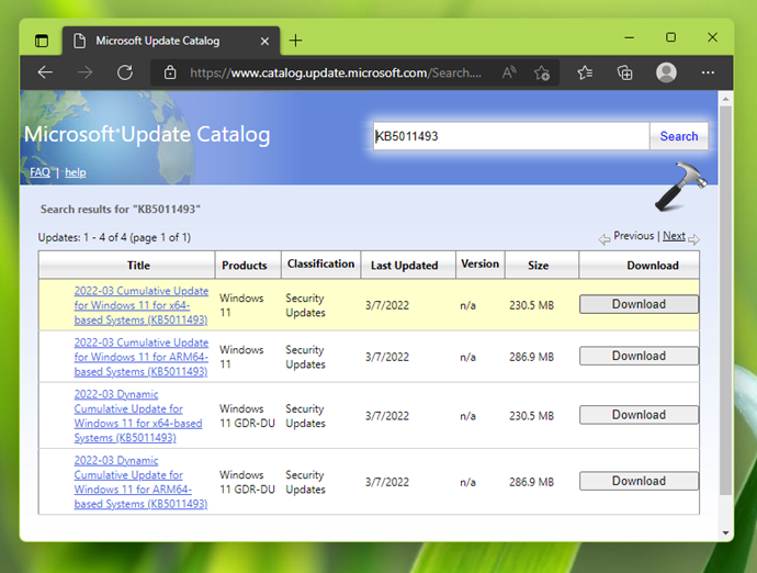3.从搜索结果中,选择与您相关的更新,然后单击下载。