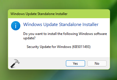7.此后,您将收到来自 Windows Update Standalone Installer 的确认,单击是的。