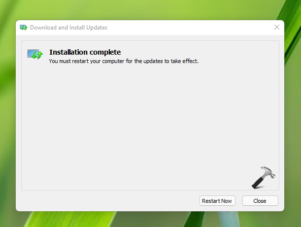 10.更新安装完成后,您需要重新启动系统以应用更新并使其更改生效。