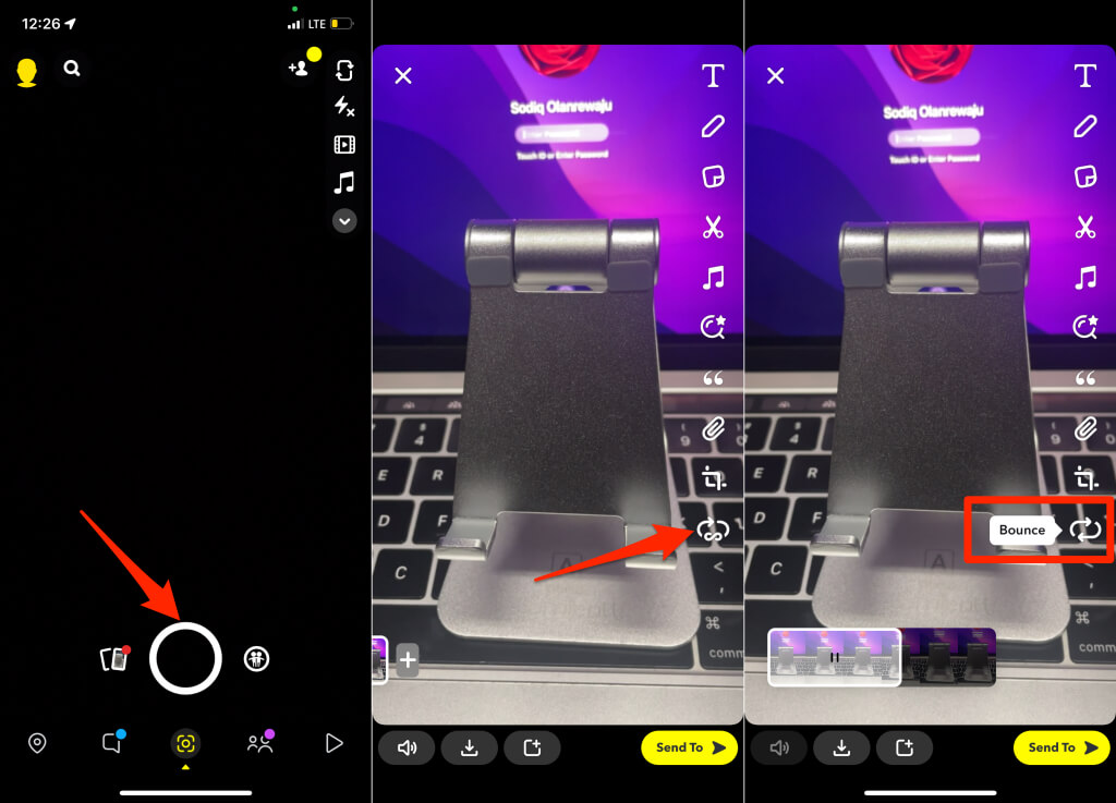 请按照以下步骤在 Snapchat 上创建 Bounce 视频。