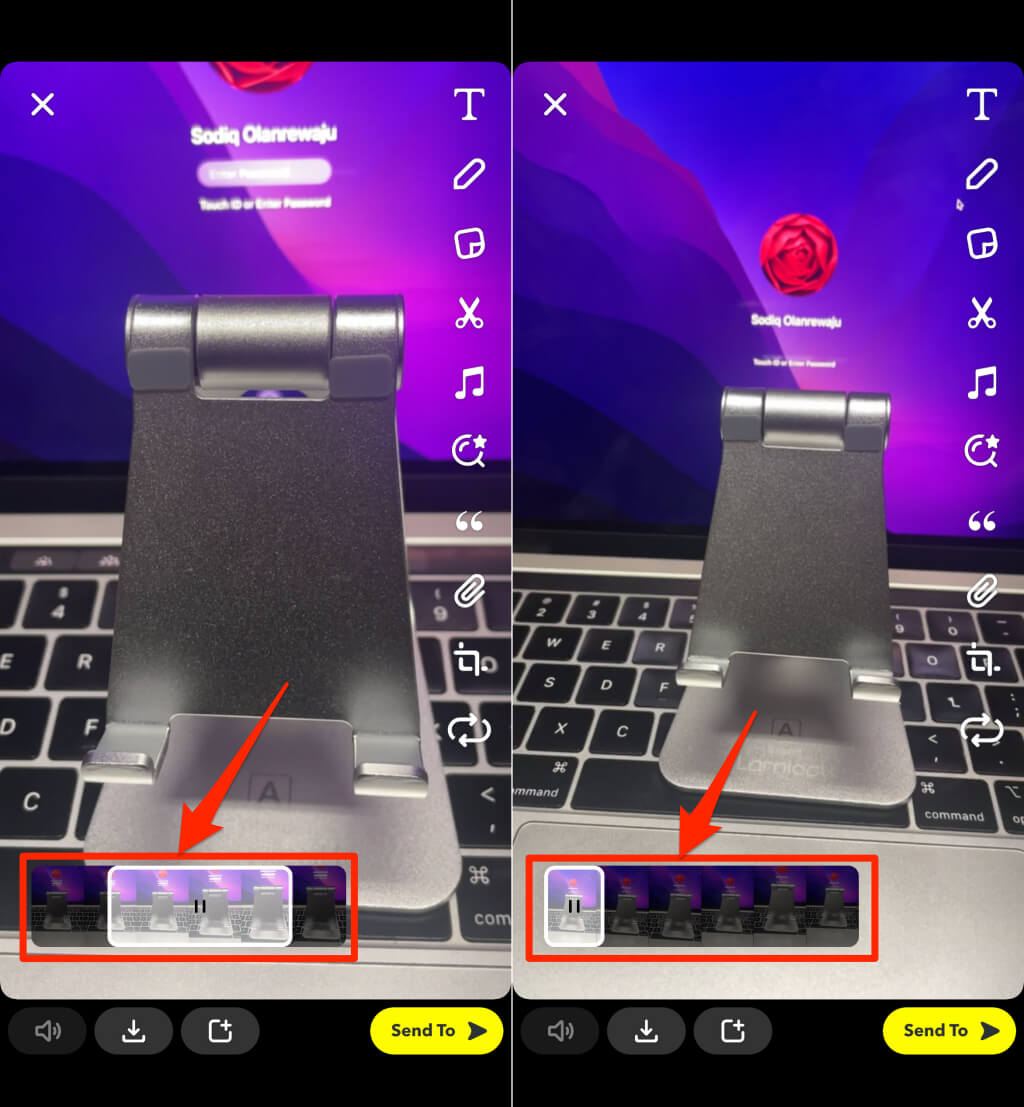 - Snapchat 会在录制的第一秒添加“弹跳”效果。将时间线突出显示到要转换为跳动剪辑的视频部分。仅当录制的剪辑长度超过一秒时,您才能裁剪/修剪 Bounce 视频。