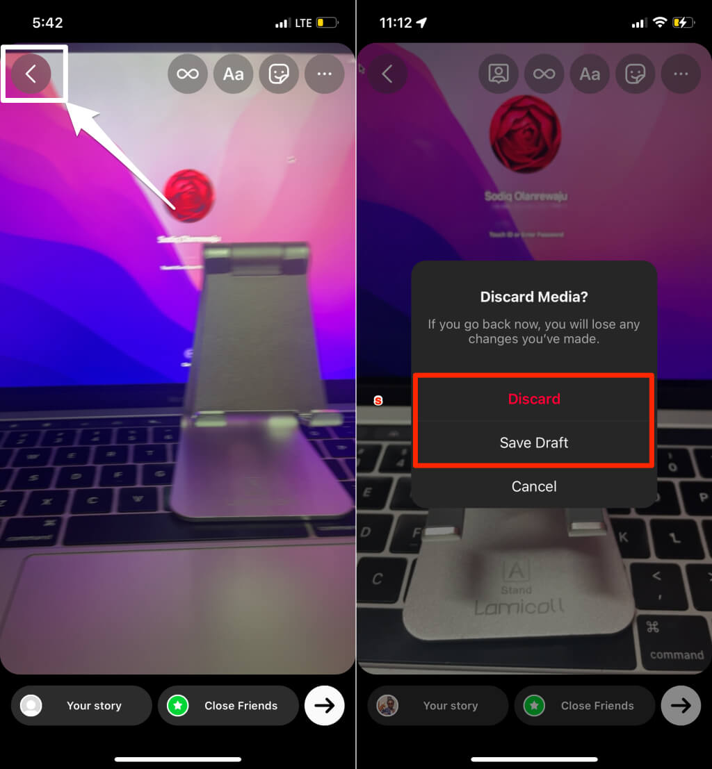 如果您不喜欢该剪辑,请将其丢弃或保存为草稿并制作新的。点击向左箭头图标并选择屏幕左上角丢弃或者保存草稿。