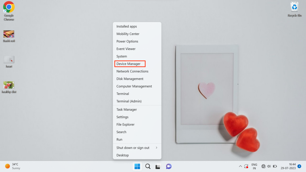 1.右键单击开始按钮并选择装置经理从上下文菜单中。