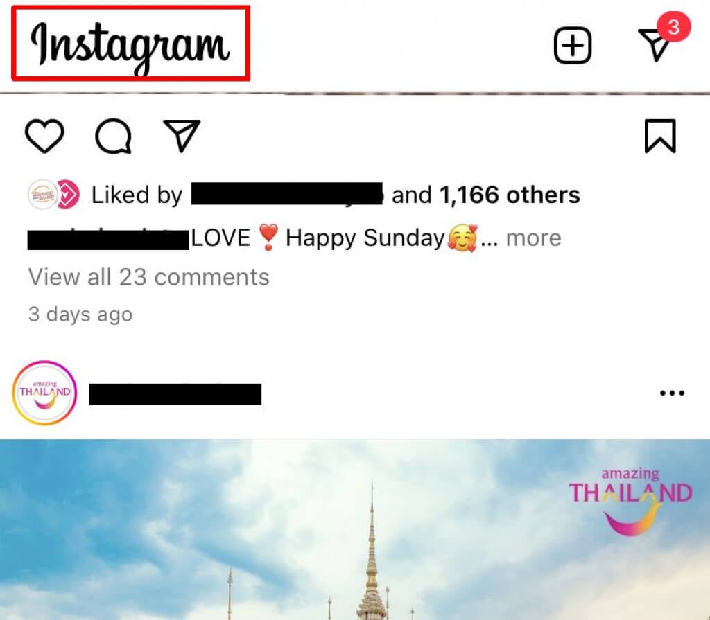 - 在 Instagram 主页上,点击 Instagram 徽标。