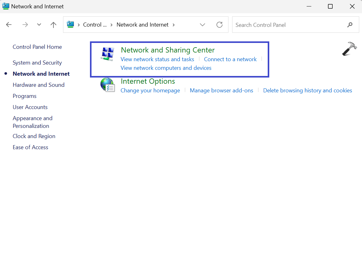 2. 现在,单击“网络和共享中心”。