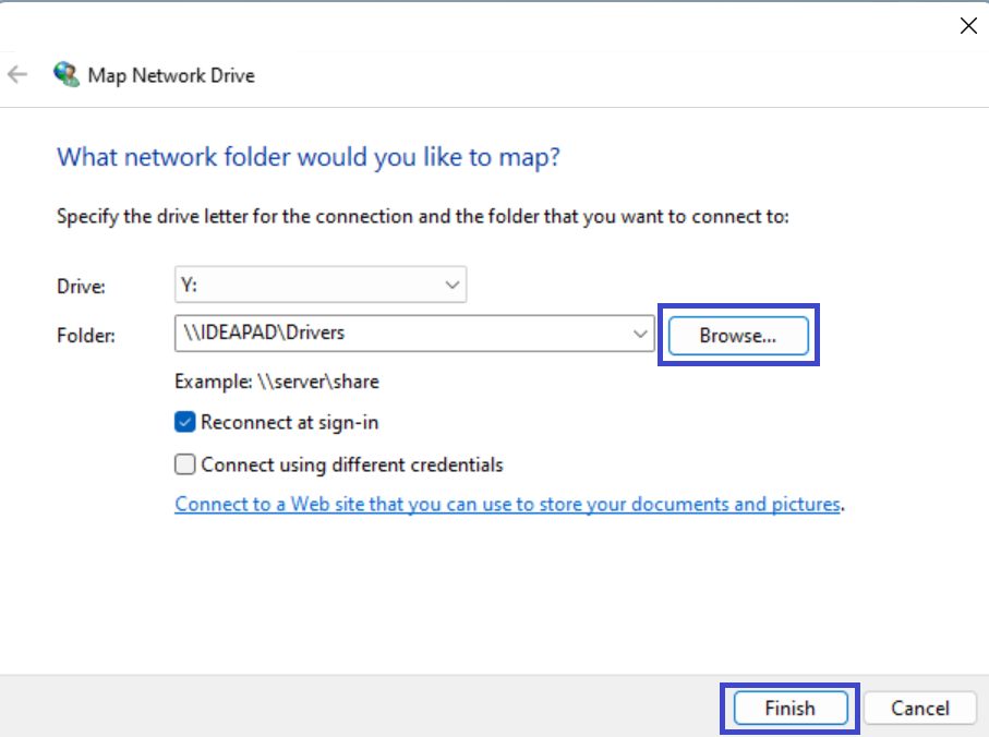 6. 如果您每次登录帐户时 Windows 都重新连接到映射的网络驱动器,请选择“登录时重新连接”选项。