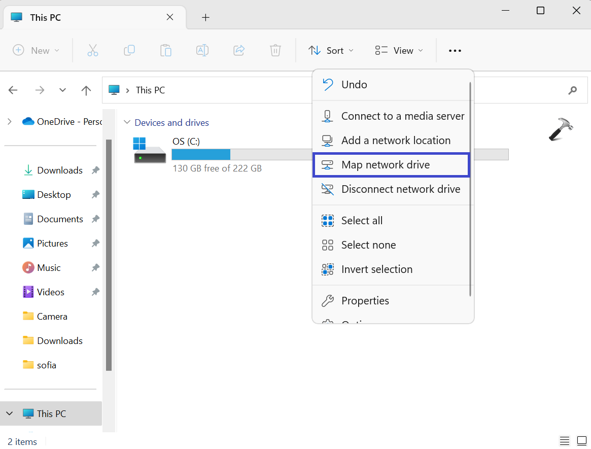 2. 单击三个点 (...),然后从下拉菜单中选择“映射网络驱动器”选项。