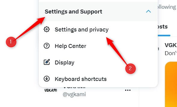 - 点击设置和支持展开带有一些相关选项的菜单。在这里,选择设置和隐私。