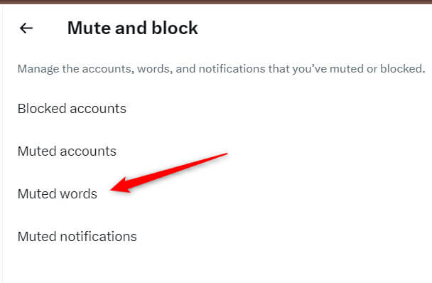 X 可让您过滤掉您想要避免的特定单词、短语、用户名、表情符号或主题标签。一旦您将这些术语静音,您将不会在“通知”选项卡、主页时间线或电子邮件通知以及可能从 X 收到的推送通知中看到包含这些术语的推文。
