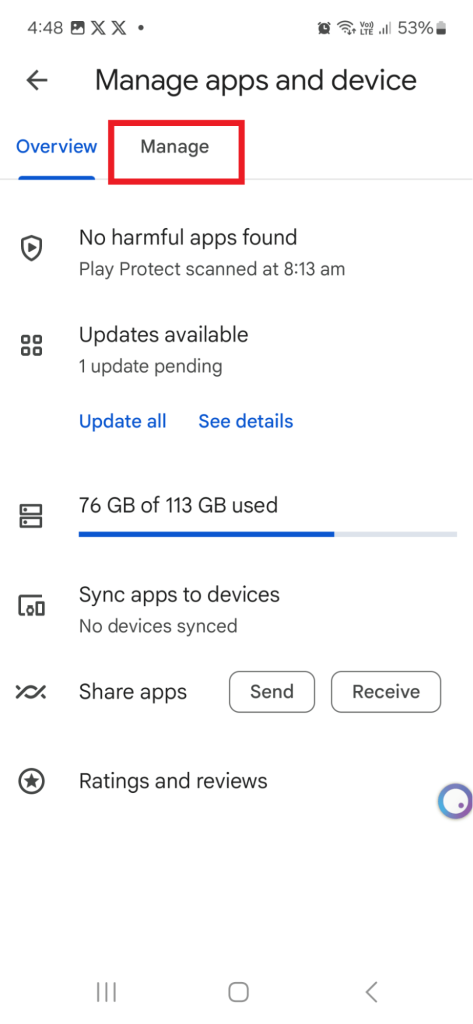 步骤3:轻敲 ”管理应用程序和设备”,这将带您进入概述菜单。